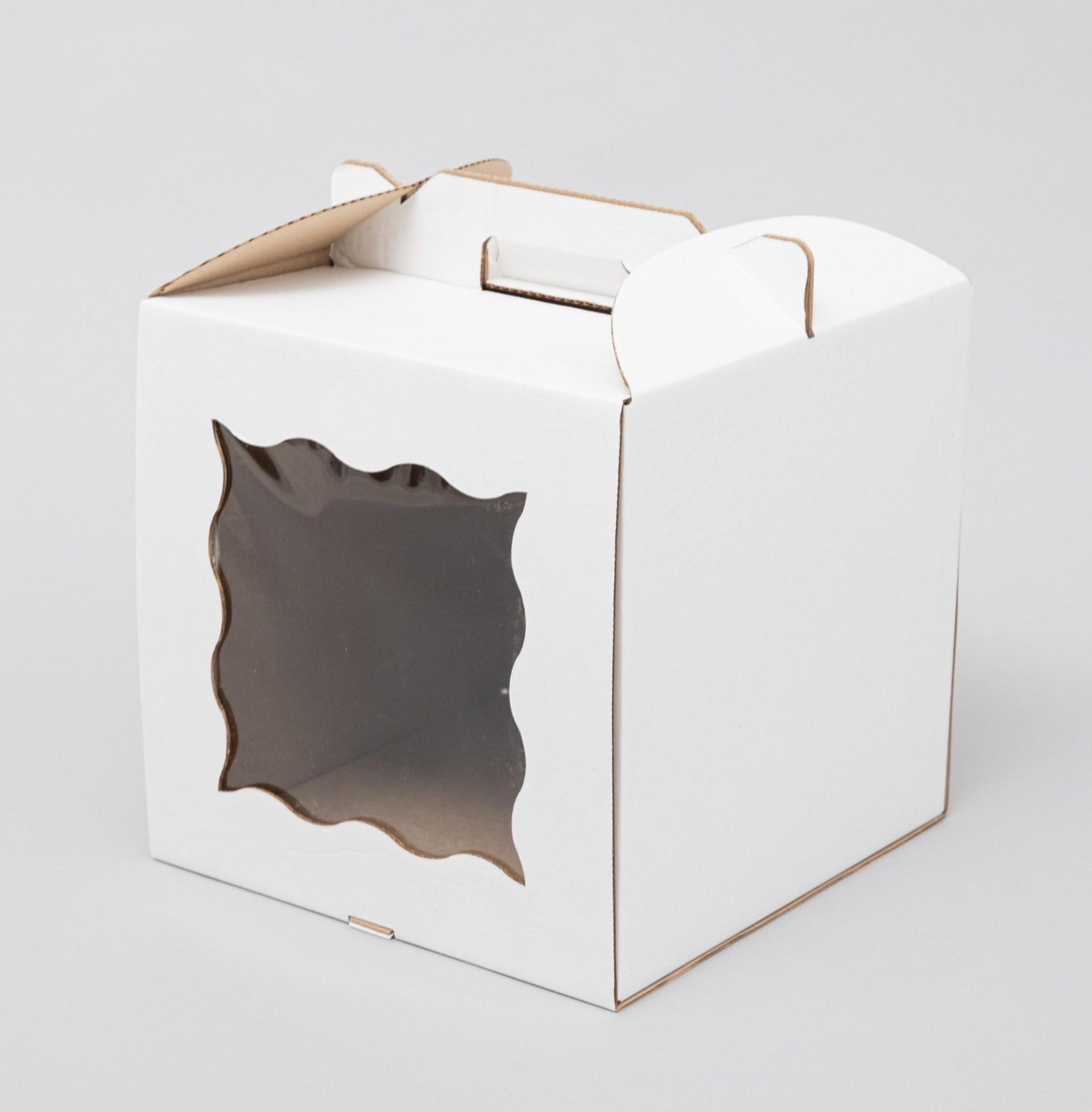 Коробка для торта 280х280х300 СУНДУЧОК, ОКНО "УЗОР", С РУЧКАМИ - Dolphin HoReCa