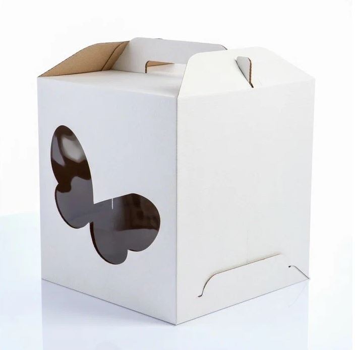 Коробка для торта 280х280х300 СУНДУЧОК, ОКНО "БАБОЧКА", С РУЧКАМИ - Dolphin HoReCa