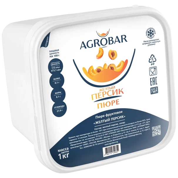 Пюре Персик ЖЕЛТЫЙ с/м 1кг /6 Агробар - Dolphin HoReCa