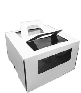 Коробка для торта 240х240х200 белая С ОКНОМ И РУЧКАМИ, упак. 25шт