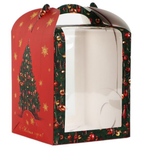 Коробка сундучок для бенто-тортов НОВОГОДНЯЯ "Роскошная елка" 150х150х180 10392855