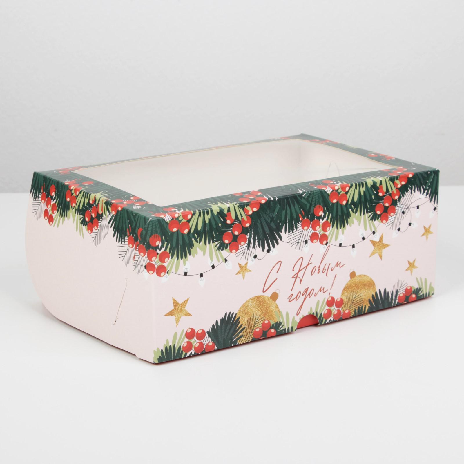 Коробка для 6 капкейков НОВОГОДНЯЯ "С новым годом" 250х170х100 6916854 - Dolphin HoReCa