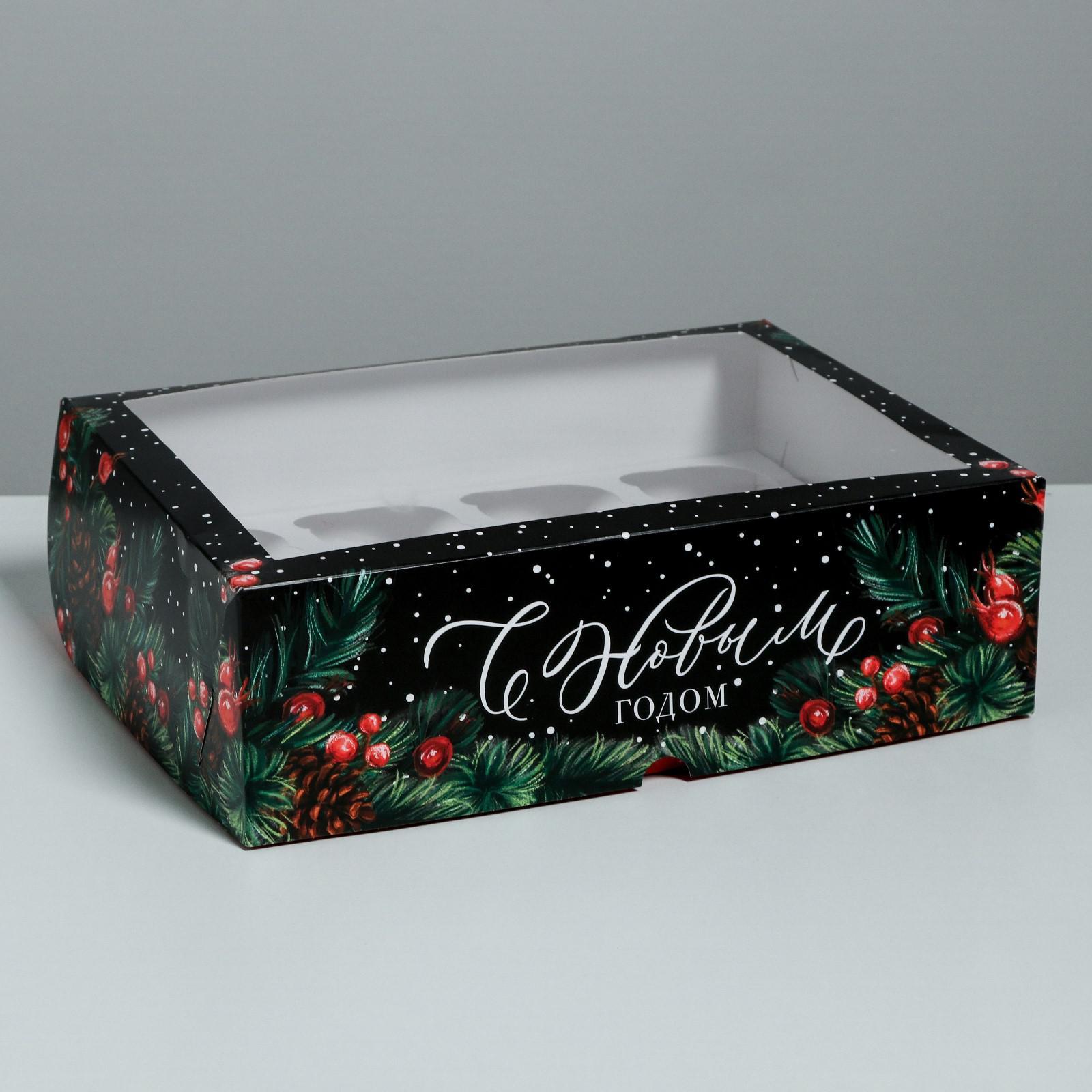 Коробка для 12 капкейков НОВОГОДНЯЯ 330х250х100 "С Новым Годом" 5117730 - Dolphin HoReCa