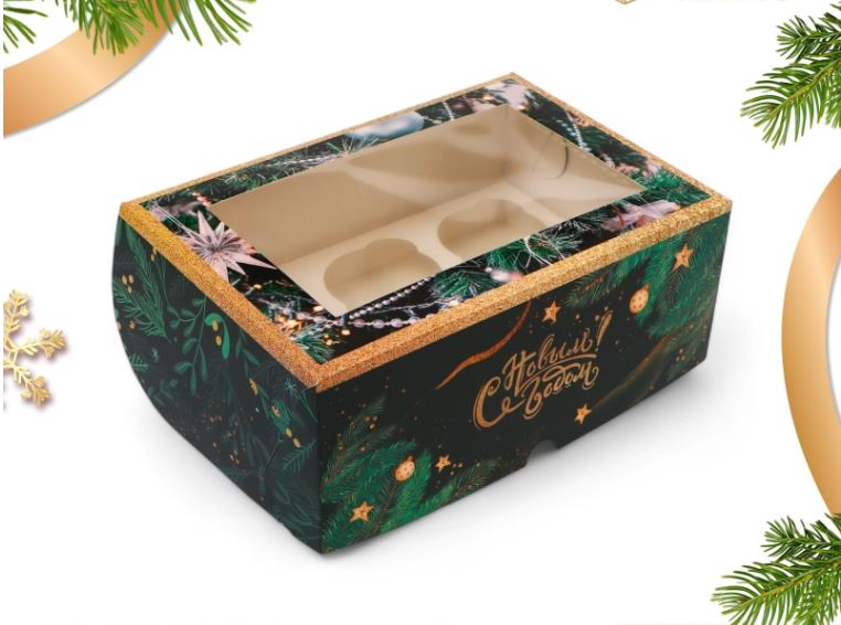 Коробка для 6 капкейков НОВОГОДНЯЯ "С Новым Годом" 250х170х100 10597631 - Dolphin HoReCa