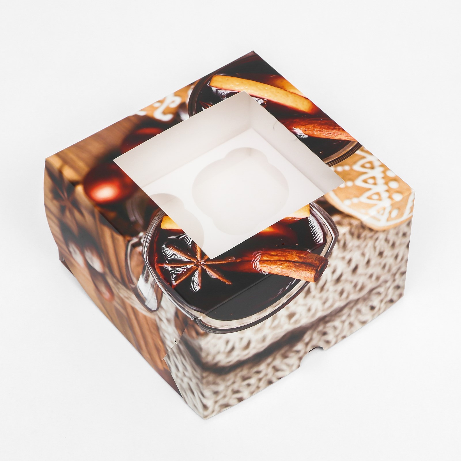 Коробка для 4 капкейков НОВОГОДНЯЯ "Глинтвейн" 160х160х100 9613260 - Dolphin HoReCa