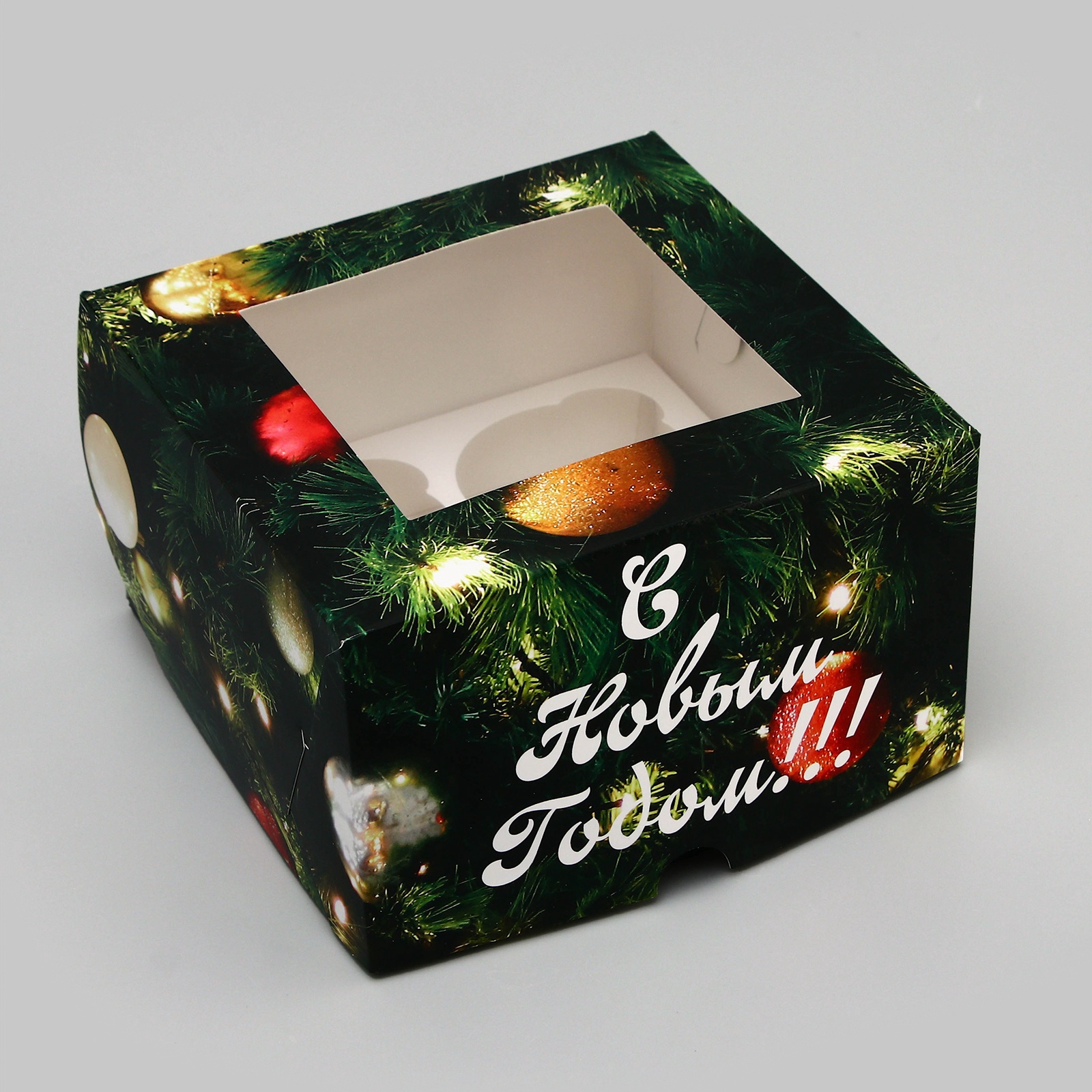 Коробка для 4 капкейков НОВОГОДНЯЯ "С Новым Годом" 160х160х100 9613258 - Dolphin HoReCa