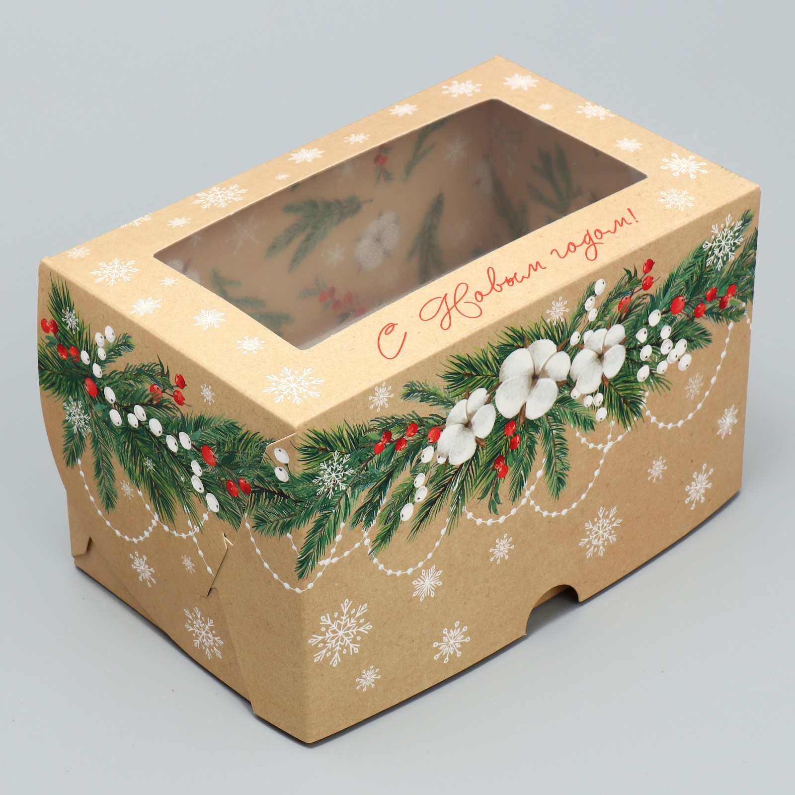 Коробка для 2 капкейков НОВОГОДНЯЯ "С Новым Годом" 160х100х100 9771206 - Dolphin HoReCa