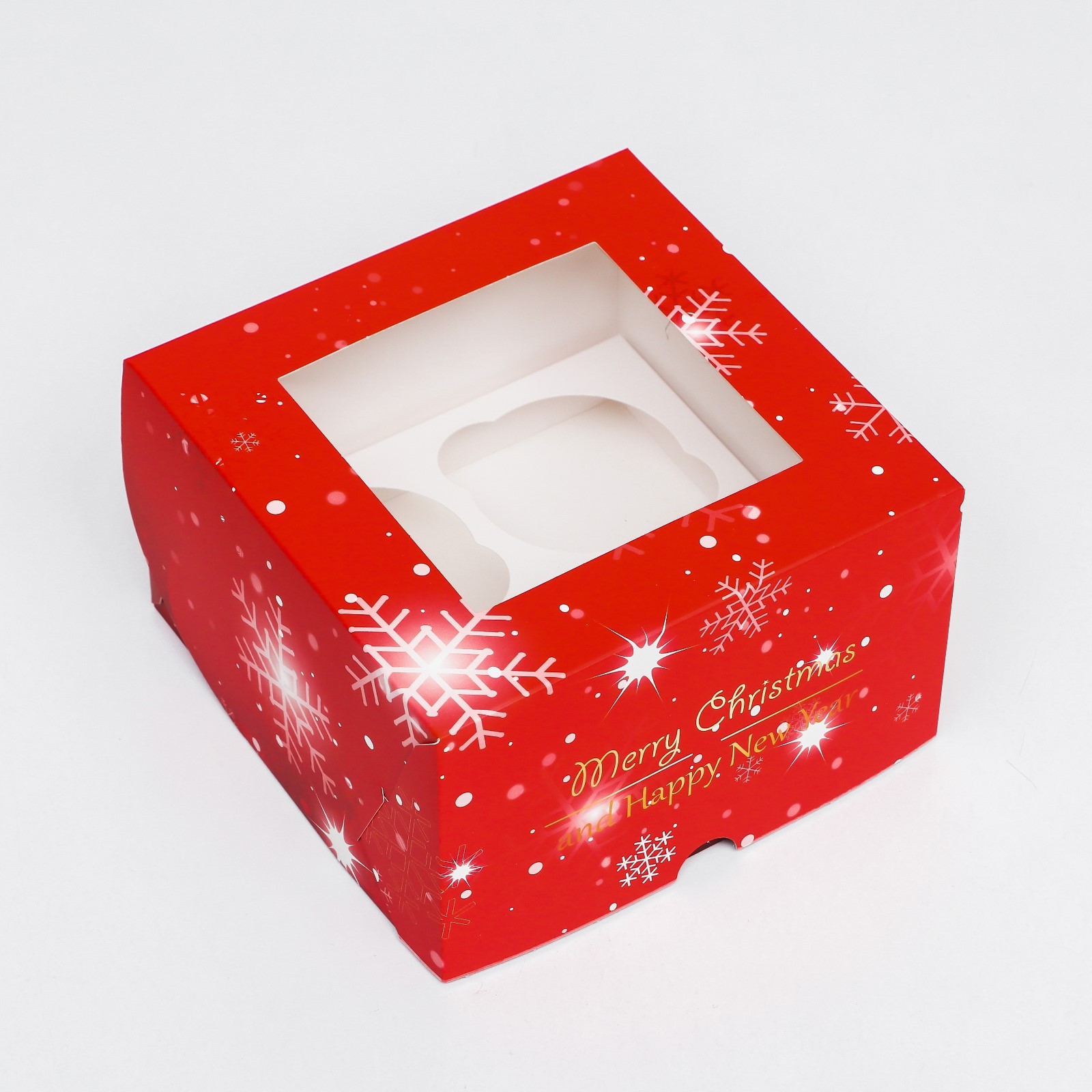 Коробка для 4 капкейков НОВОГОДНЯЯ "С Праздником" 160х160х100 9613261 - Dolphin HoReCa