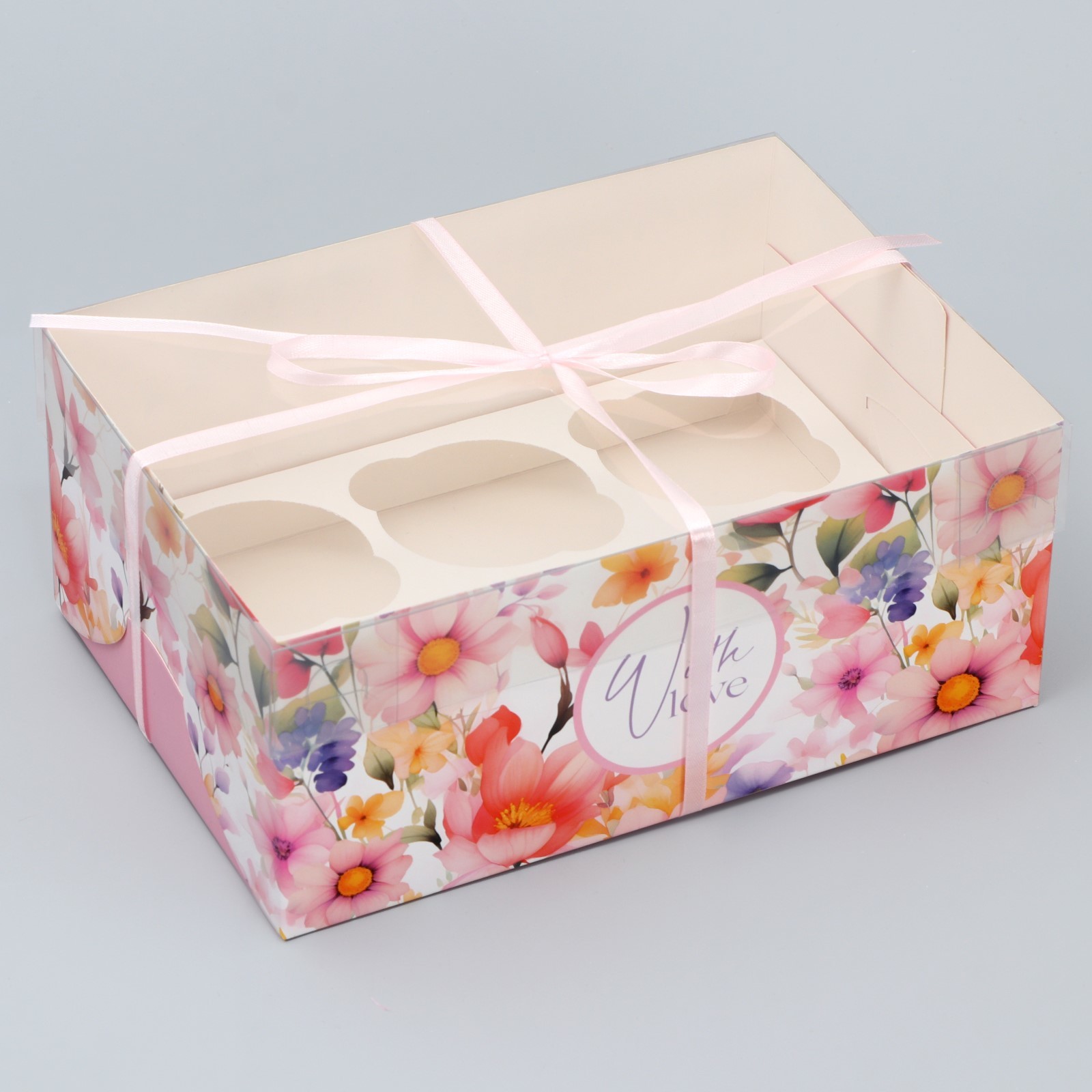 Коробка для 6 капкейков "Нежность" 230х160х100 9944752 - Dolphin HoReCa