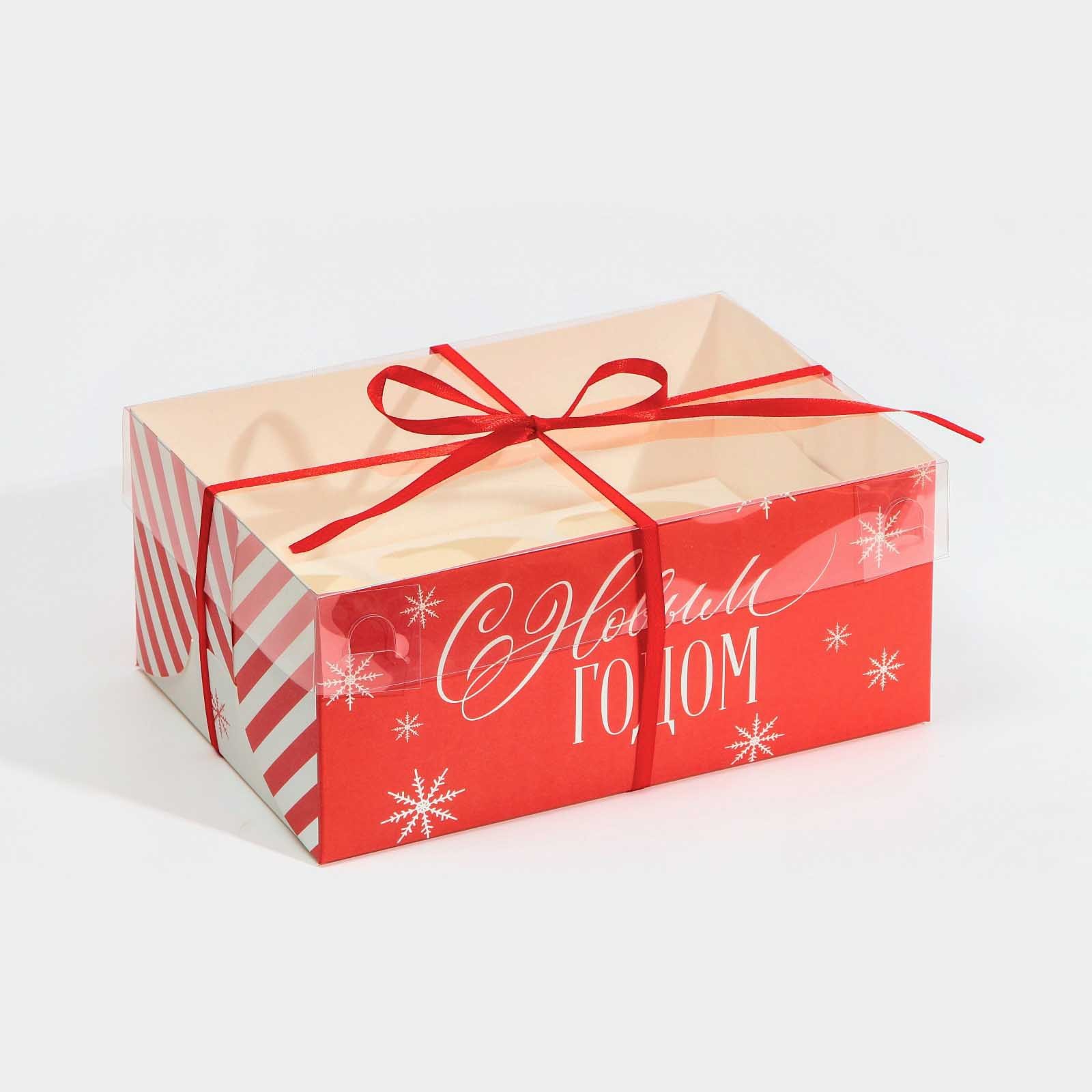 Коробка для 6 капкейков НОВОГОДНЯЯ "Поздравляю с НГ" 230х160х100 7813928 - Dolphin HoReCa