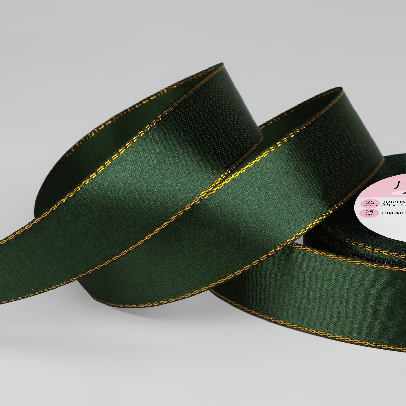 Лента атласная 25мм*25м золотые нити №049 зеленый - Dolphin HoReCa