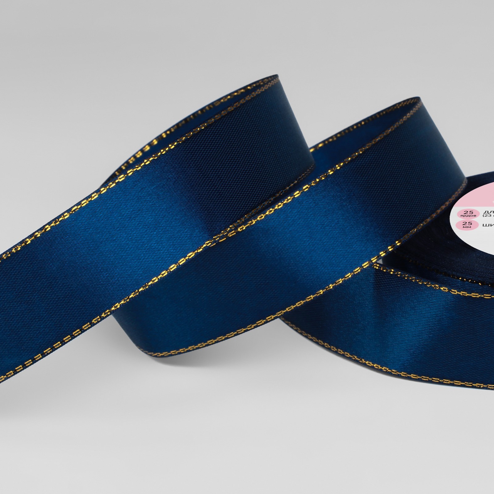Лента атласная 25мм*25м золотые нити №038 синий - Dolphin HoReCa