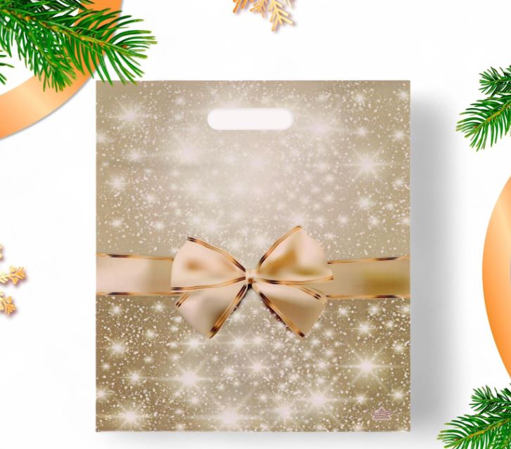 Пакет НОВОГОДНИЙ "Изысканный бант" с вырубной ручкой 31х40 7355178 - Dolphin HoReCa
