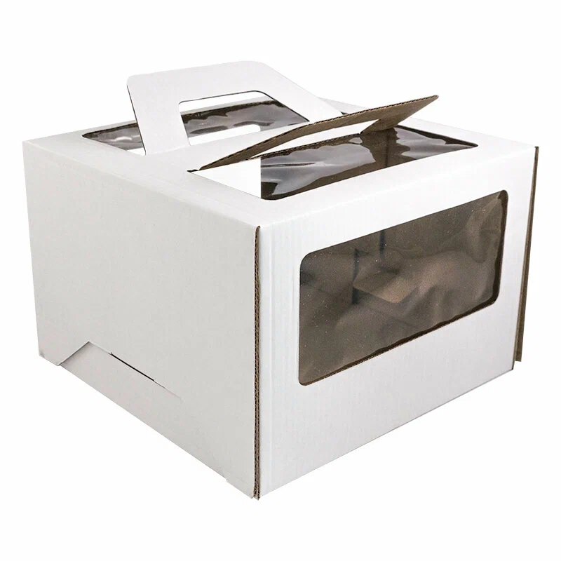 Коробка для торта 240х240х200 белая С ОКНОМ И РУЧКАМИ, упак. 25шт - Dolphin HoReCa