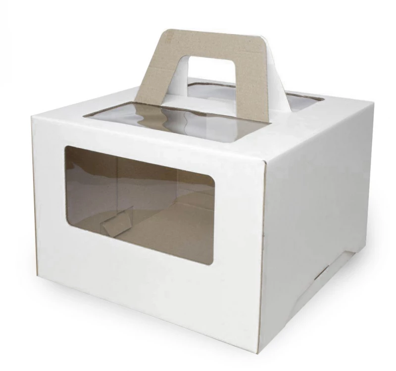 Коробка для торта 260х260х200 белая С ОКНОМ И РУЧКАМИ, упак. 25шт - Dolphin HoReCa