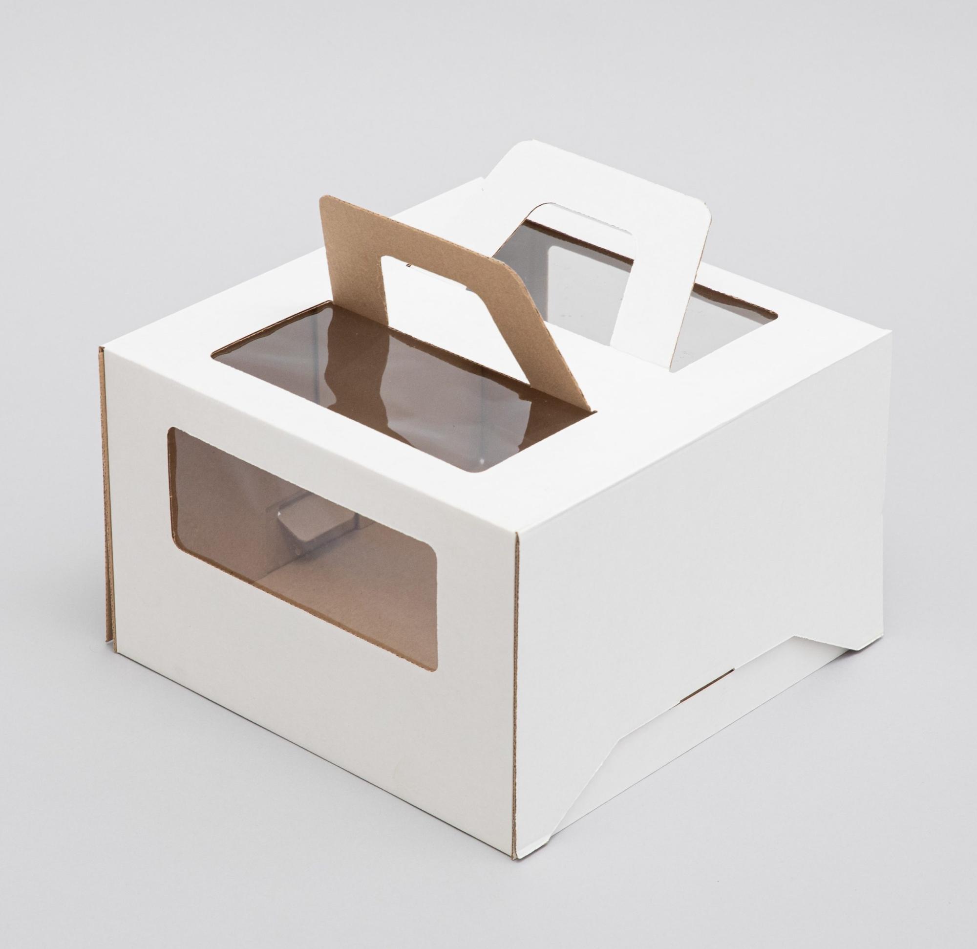 Коробка для торта 280х280х200 белая С ОКНОМ И РУЧКАМИ - Dolphin HoReCa