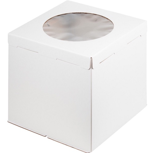 Коробка для торта 300х300х300 белая С ОКНОМ + донышко - Dolphin HoReCa