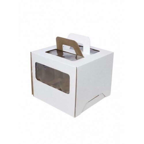 Коробка для торта 260х260х280 белая С ОКНОМ И РУЧКАМИ - Dolphin HoReCa