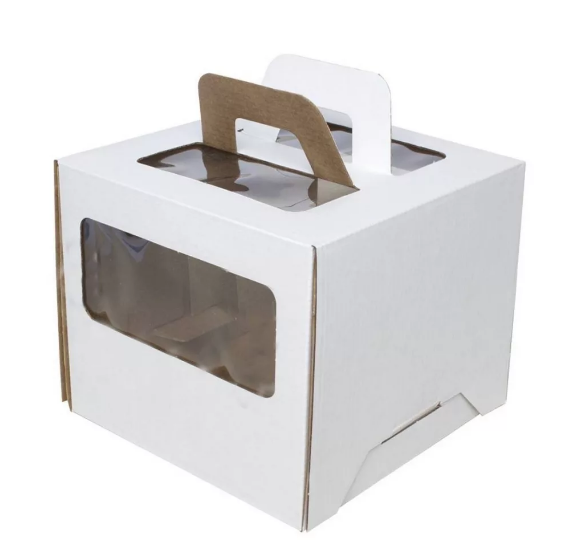Коробка для торта 240х240х260 белая С ОКНОМ И РУЧКАМИ - Dolphin HoReCa