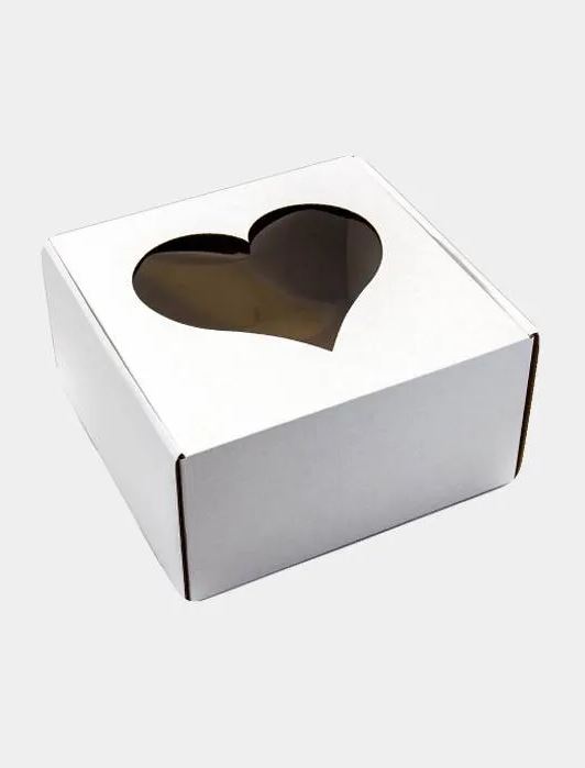 Коробка для торта 200х200х100 С ОКНОМ "Сердце" - Dolphin HoReCa