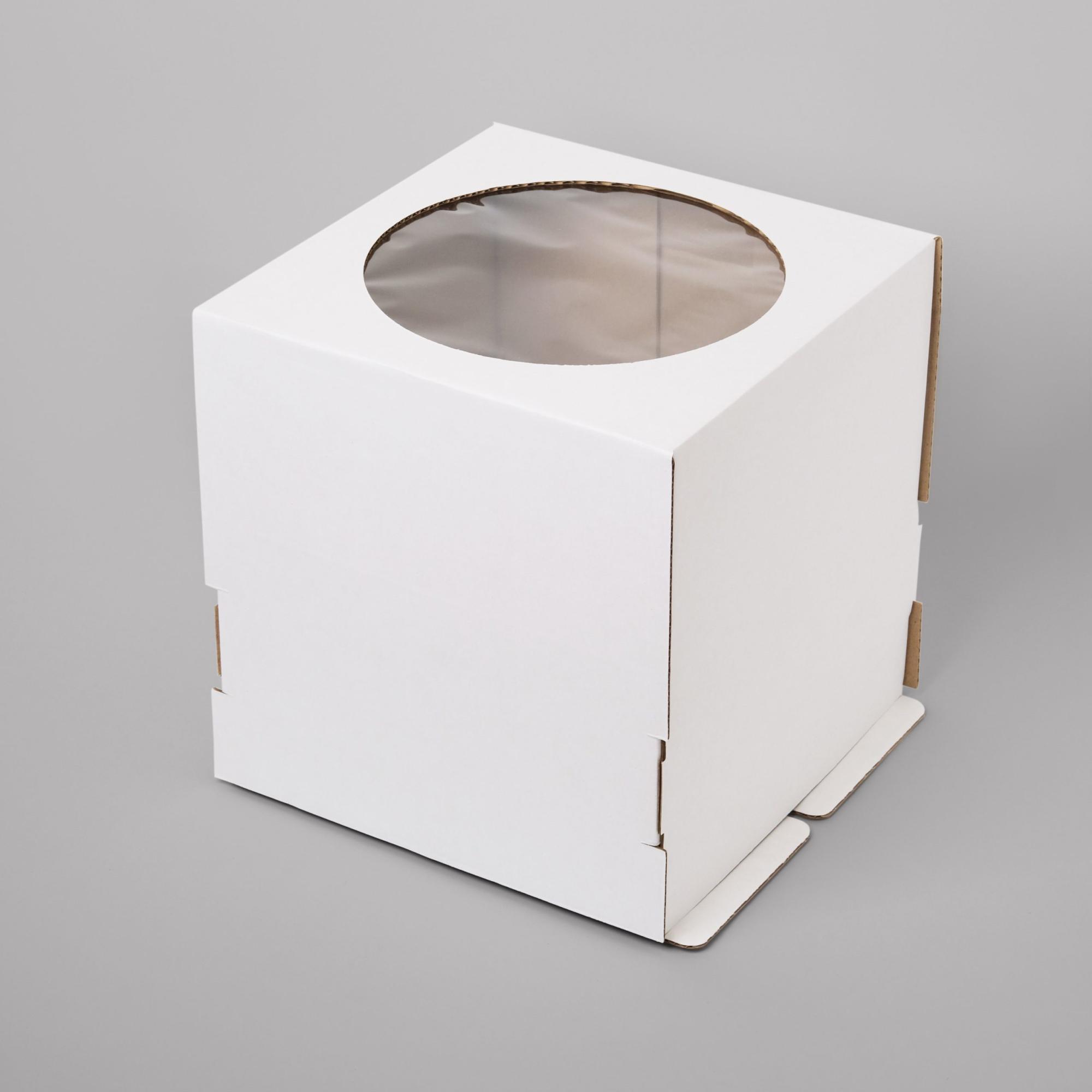 Коробка для торта 240х240х220 белая С ОКНОМ + донышко - Dolphin HoReCa