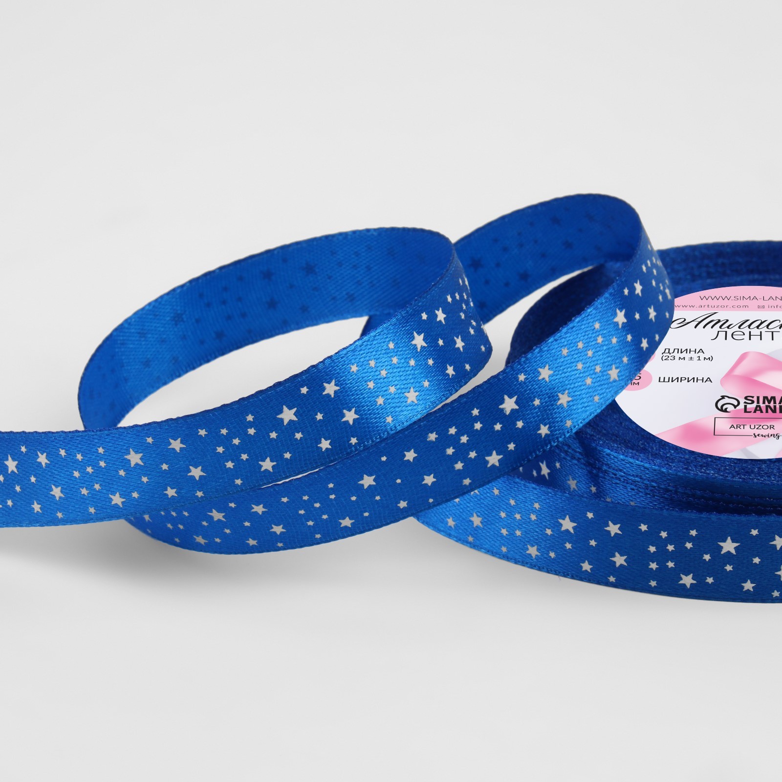 Лента атласная 15мм*25м звезды №040 синий 1902819 - Dolphin HoReCa