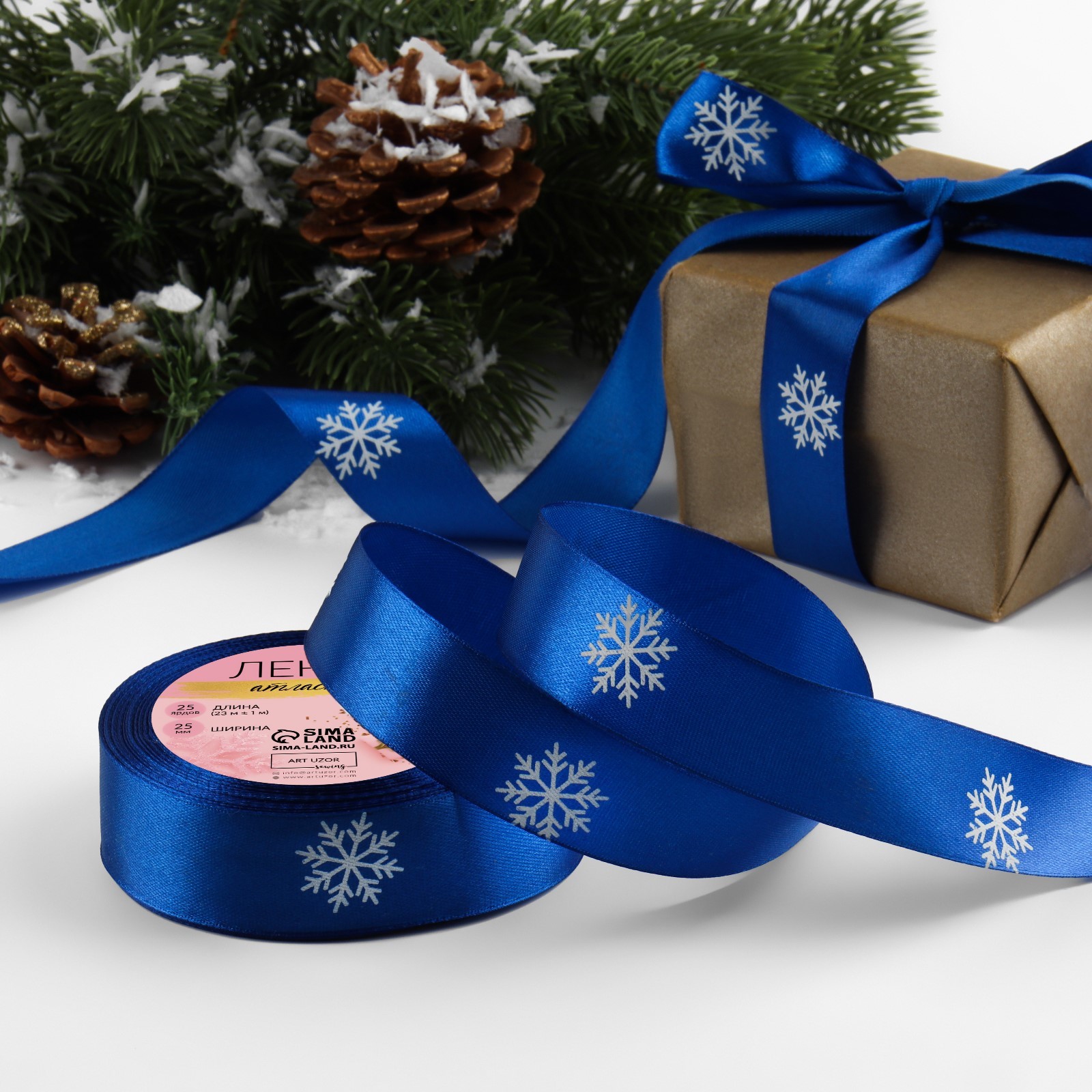 Лента атласная 25мм*25м Снежинки №122 синий/белый 7706138 - Dolphin HoReCa