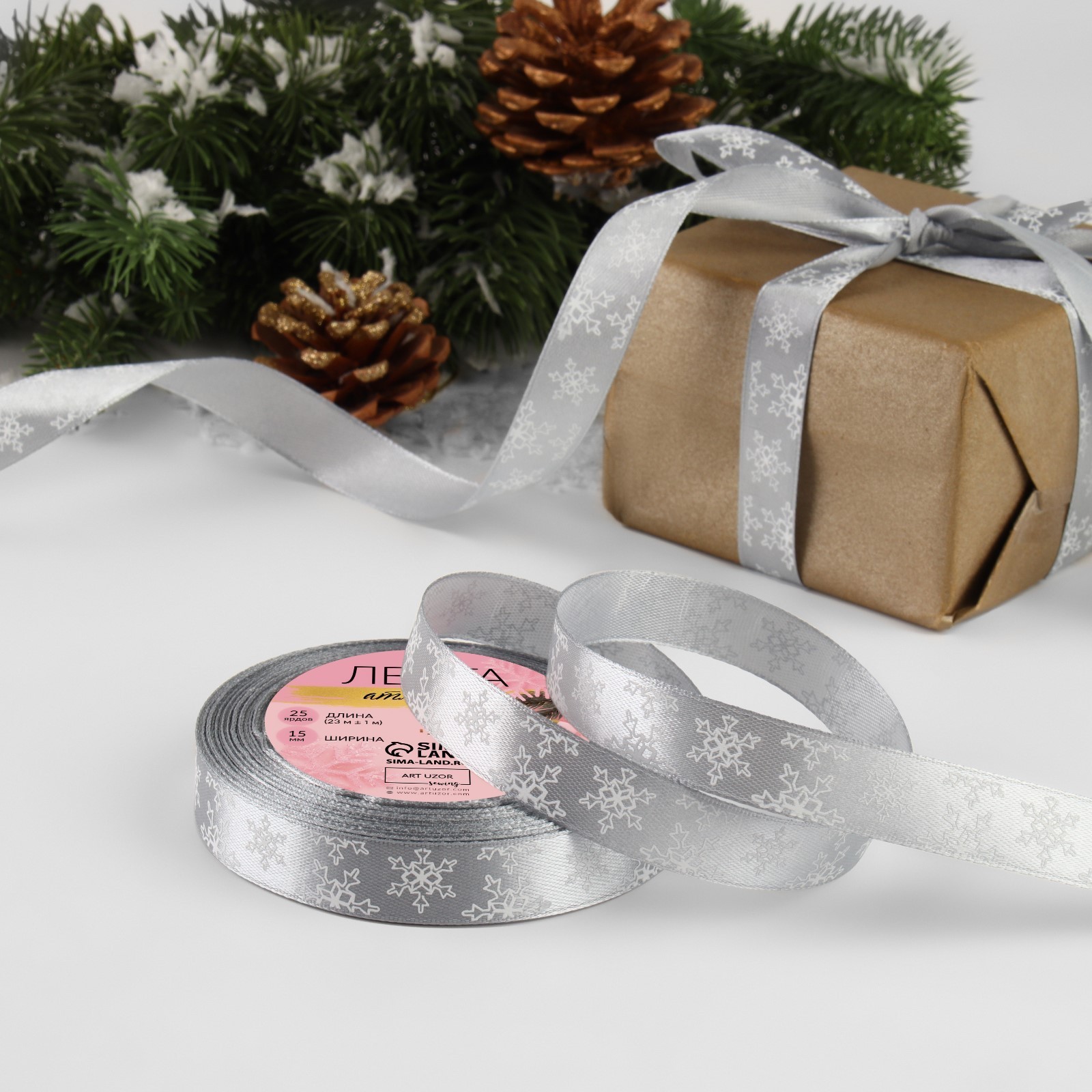 Лента атласная 15мм*25м снежинки №59 серый 3557568 - Dolphin HoReCa
