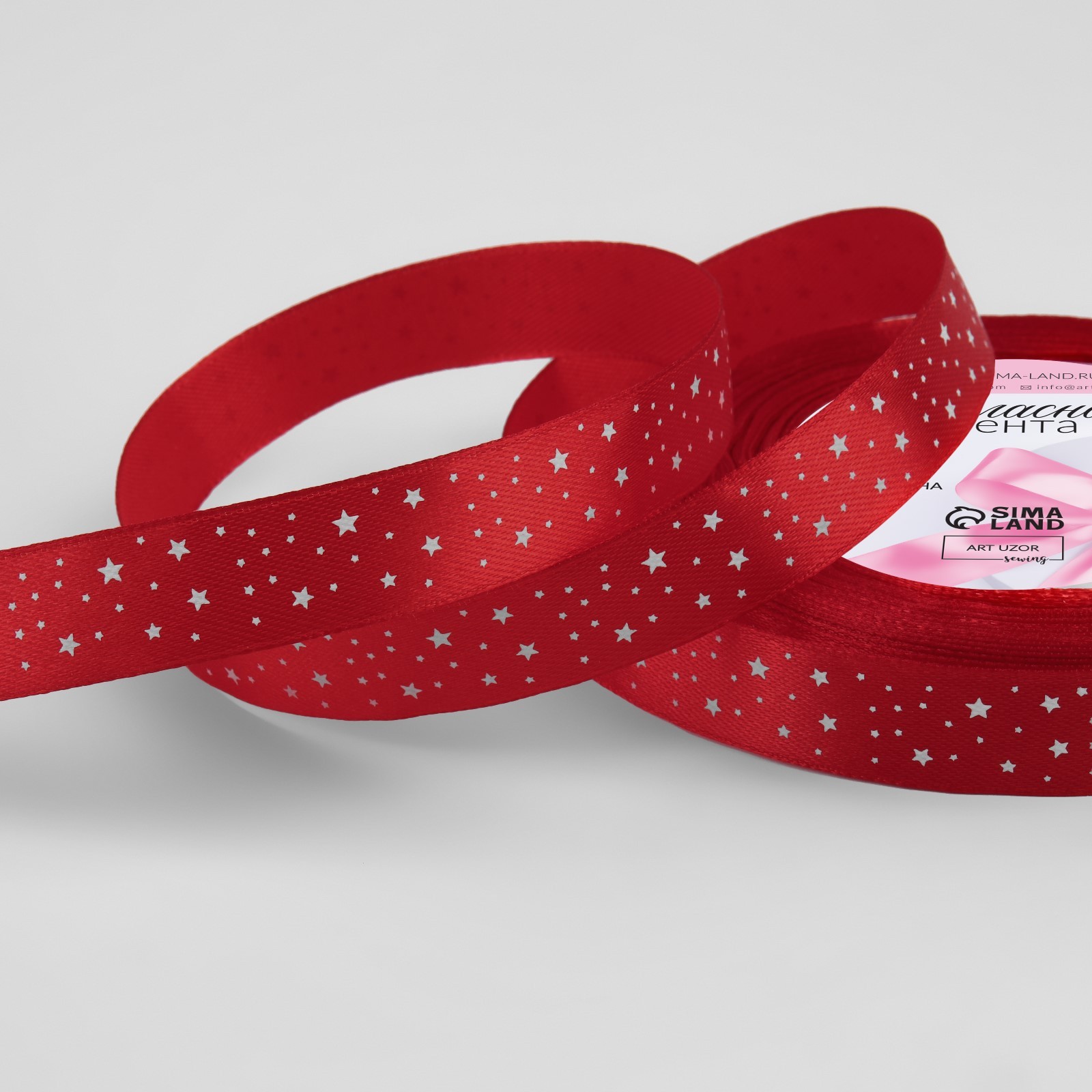 Лента атласная 15мм*25м звезды №026 красный 1902818 - Dolphin HoReCa