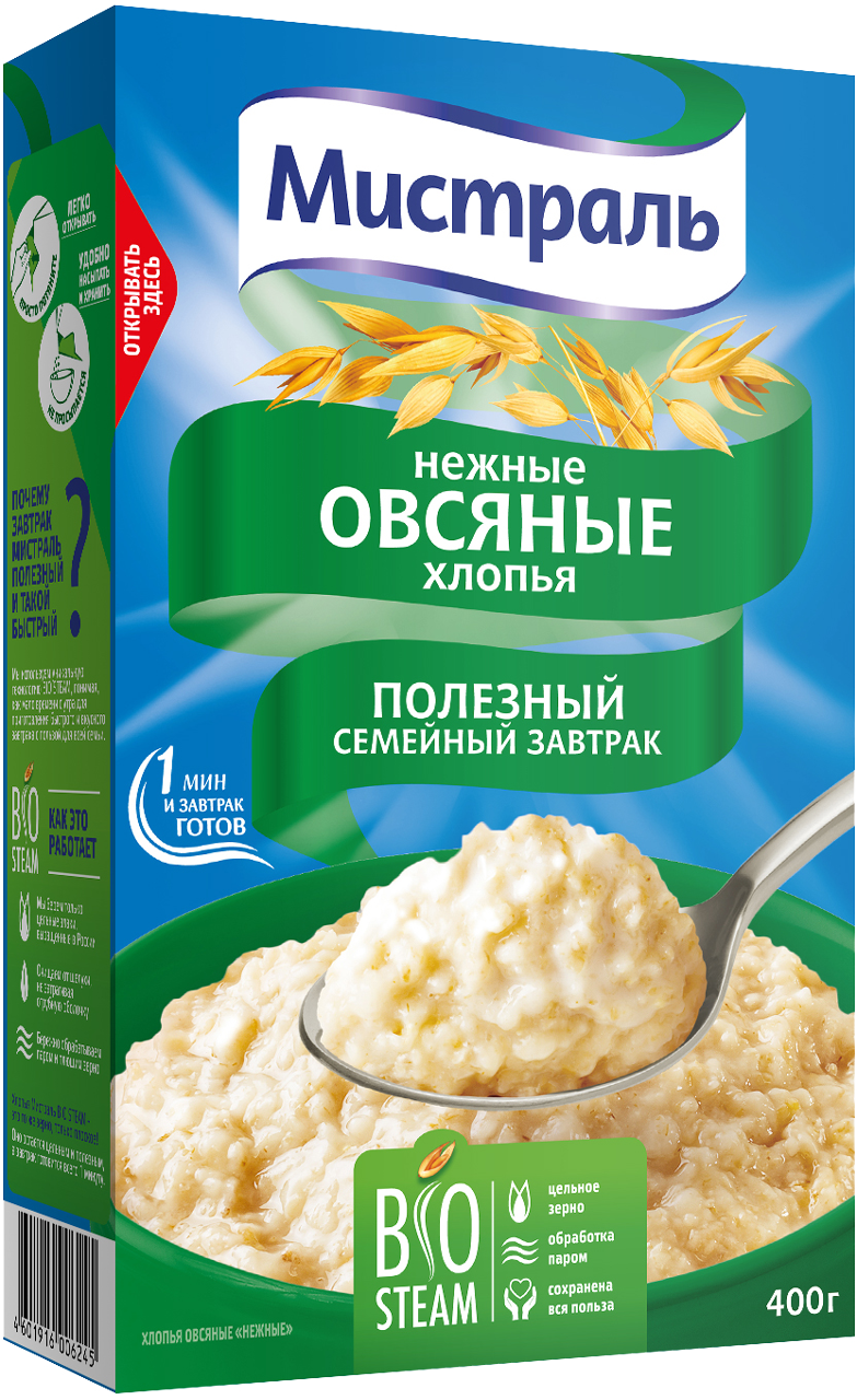 Хлопья Овсяные нежные 400гр /12 МИСТРАЛЬ 66130 - Dolphin HoReCa
